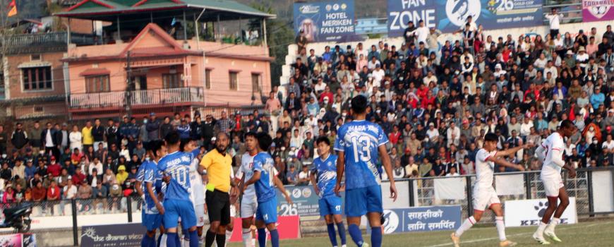 धरान / २६ औं बुढासुुब्बा गोल्डकप विहिबारको खेलमा चर्च ब्वाइज काठमाण्डौंले झापा ११ लाई हराउदै फाईनलमा प्रवेश गरेको छ । धरान रङ्गशालामा जारी बुढासुब्बा गोल्डकपको दोस्रो से ...